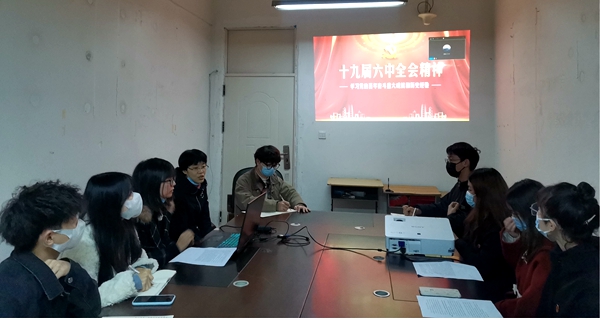 11月24日中午,我系学生党支部召开学习党的十九届六中全会精神专题分享会,我系党总支书记冯端,学生党支部书记杜宇领学,学生党支部预备党员 www.91,党员发展对象,入党积极分子代表参加了本次学习分享会,校外实习的预备党员也在线学习。